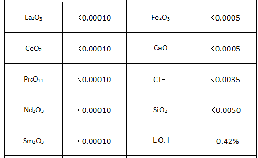 Y2O3:≥99.999% or ≥99.99% or ≥99.9%